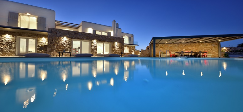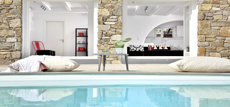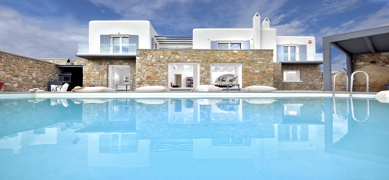 Blue Heart is an exceptionally unique property located at the Southern part of Mykonos, overlooking the islands of Paros and Naxos with stunning views over the Aegean sea and its secluded PRIVATE BAY. The villa is superbly located in the most vivid area of the island, just walking distances from the famous beaches of PARADISE and PARAGA which have established Mykonos as an internationally cosmopolitan destination. Within a private land of breathtaking view, are four attached villas arranged in such a way that their residents can independently enjoy internal privacy and comfort, as if in their own home, whilst externally are offered the opportunity to relax or party at the adjacent verandas or the surrounding spaces. The extensive grounds with their walkways, surrounding the villas, have been landscaped in such a way as to allow privacy and seclusion either in the two "infinity pools" with magnificent sea views or to the two mini pools which are ideal relaxation spots for the grownups or playgrounds for the little ones. The spacious outdoor facilities, including its two barbeques, can form a unified surrounding ideal for partying, weddings or other similar activities demanding large gatherings. Blue Heart is one of the biggest rental properties in Mykonos offering luxurious accommodation for 32 guests in its 16 guest bedrooms with their en suite bathrooms. Every thought has been given into making your stay at Blue Heart easy and enjoyable. However, in case it is so desired we have carefully selected a number of supplementary services (e.g. renting of sailing boat or cruiser, catering services, on-site massage, diving, etc.) all of which can be offered on a demand basis and be booked in advance, subject to availability.